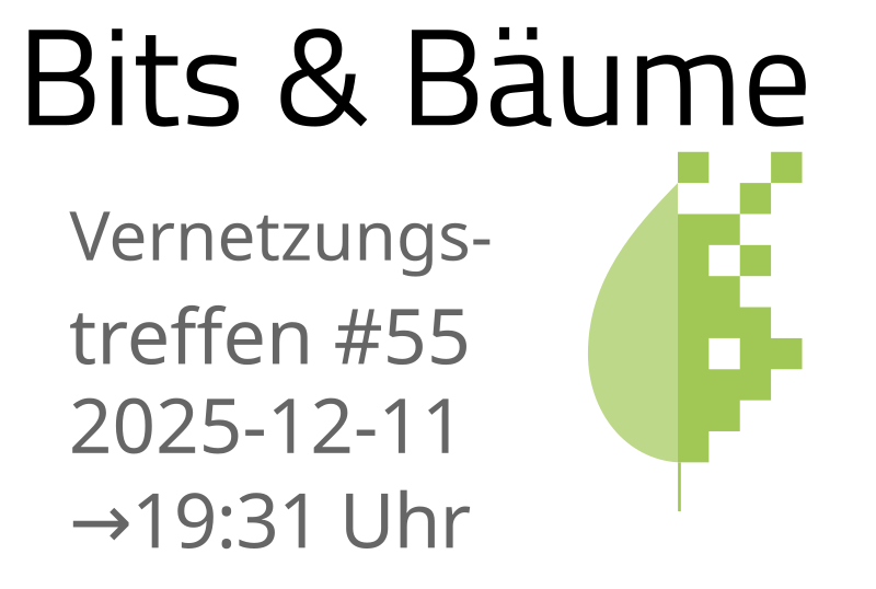 Wie immer am ersten Ausnahmsweise am zweiten Donnerstag im Monat gibt es auch am 11. Dezember 2025 wieder ein Bits & Bäume-Online-Treffen.